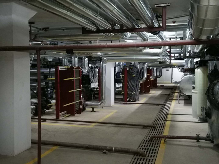 那么由一次网和二次网的热量交换地点就是我们所说的换热站了。通俗的说就是把热电厂产生的高温蒸汽或供热首站的高温水输送到各个居民小区,然后换热站将高温蒸汽、高温水的热量转换再传送到小区的供暖管网中。